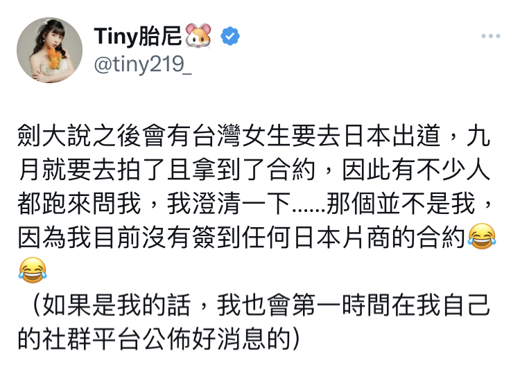 推 tahikuro: tiny在台灣也不拍男女片 怎麼可能去日本拍 08/12 09:04