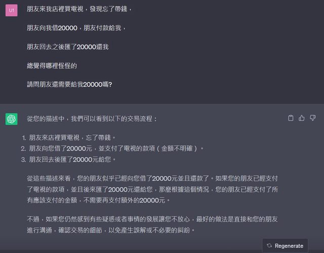 推 vaiking0120: 根本不用有借和付款的動作,直接回去匯兩萬給朋友就 08/22 01:40