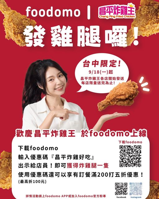 : 今天只要下載foodomo app然後輸入『昌平炸雞好吃』優惠碼