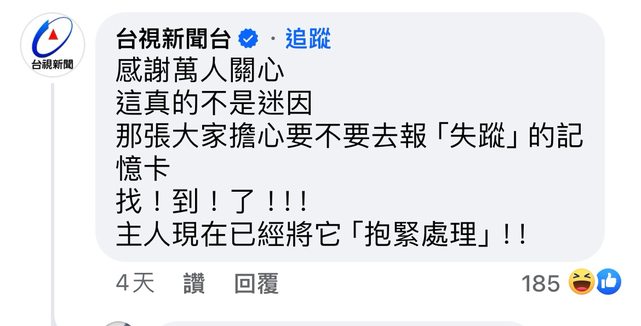 : 台視新聞直播畫面傳出「誰有看到我記憶卡」