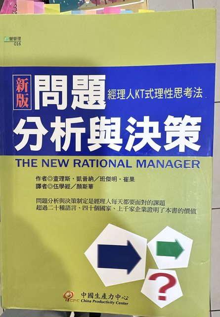 或許您可以參考這本中國生產力中心出版的商業管理書上的理性思考邏輯喔。