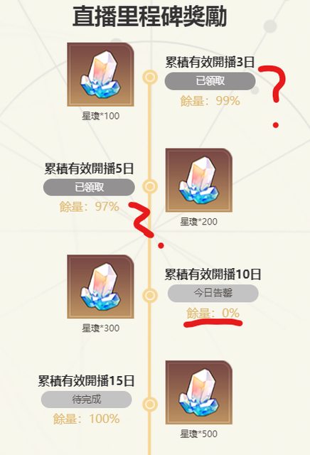 → supaucat: 他大概有設定一個每日領取量 那個99%應該是今天3天獎勵 04/06 01:10