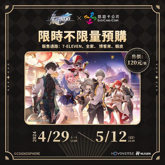 : 推出「崩壞:星穹鐵道一週年」主題悠遊卡。開放多個販售通路(全臺地區,包括離島)