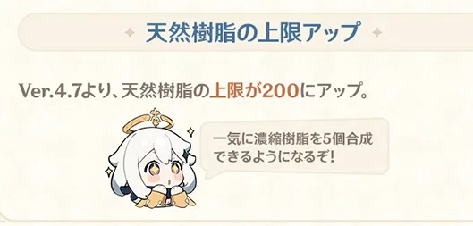 推 ClawRage: 樹脂可以累積200,以後不用玩濃縮樹脂了 05/22 10:43