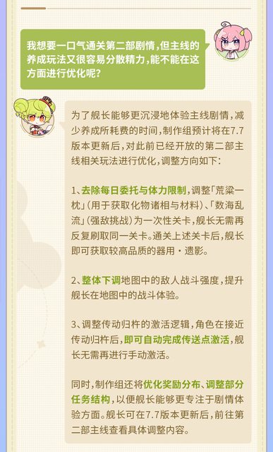 第一項就是上版本的精簡繼續延續到這版本,其他的主線、樂土優化部分如果是你是持續