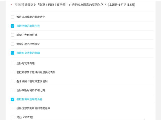 2.活動劇情的故事內容感受如何? 除了非常滿意之外,真的非常驚喜! https://i.imgur.com/dcks1mf.jpeg