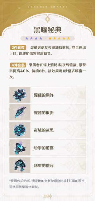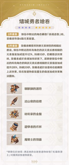 旅行者好~今天將為大家介紹的是5.0版本中的全新聖遺物套裝,一起來看看吧~