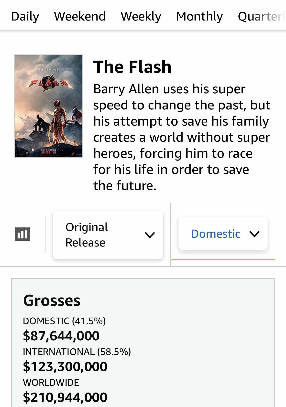 推 chyx741021 : 依照近十餘年的全球超英熱潮,閃電俠海外佔不到6成 06/26 01:25
