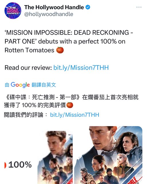 推 realityalan : 誰管爛番茄評分啊 阿湯哥上大螢幕絕對是看爆啦 07/06 01:57