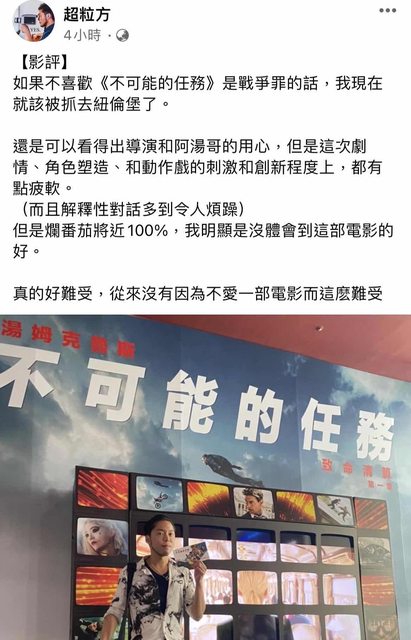 推 smilekrtc : 但衝著阿湯哥守護大銀幕的偉大情操,我還是會去刷 07/07 20:15