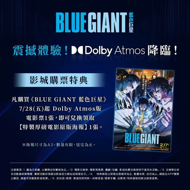 : 《BLUE GIANT #藍色巨星》Dolby Atmos 7/28 (五) 確定在台上映!!!