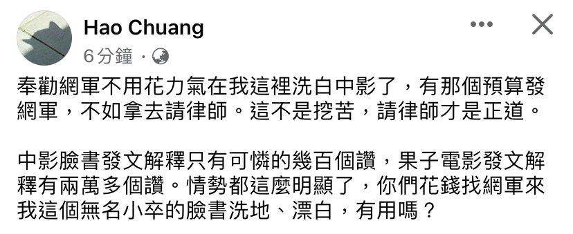 推 ooxxman : 只是文青式辯護,真在電影圈內的話自己也不信算法 07/21 15:05