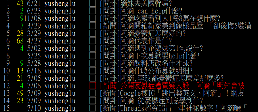噓 brella : 呵呵,連李玟的死都可以在八卦板開玩笑發文 07/23 01:52