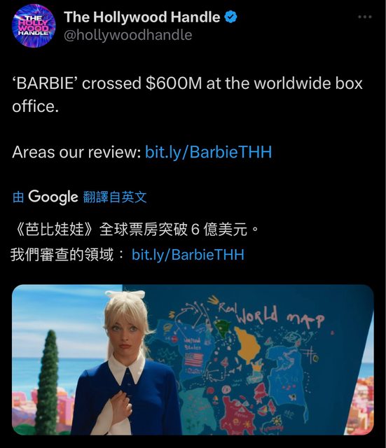 推 qoo2002s : 如果芭比評價差 肯定被酸政確片:) 07/29 14:34