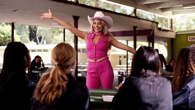 在芭比的世界被侵占後,Gloria 發表了一場充滿激情的演講,講述了作為一個女人意味