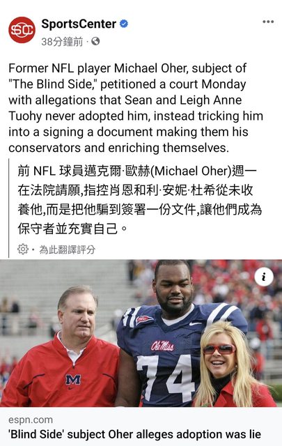 推 GenYDad : Oher說他是2023年2月才發現他18歲時被騙簽約被監管 08/15 10:27