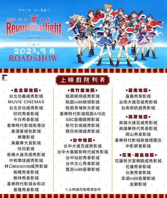 標題[情報] 《劇場版 少女☆歌劇》公布上映戲院列表