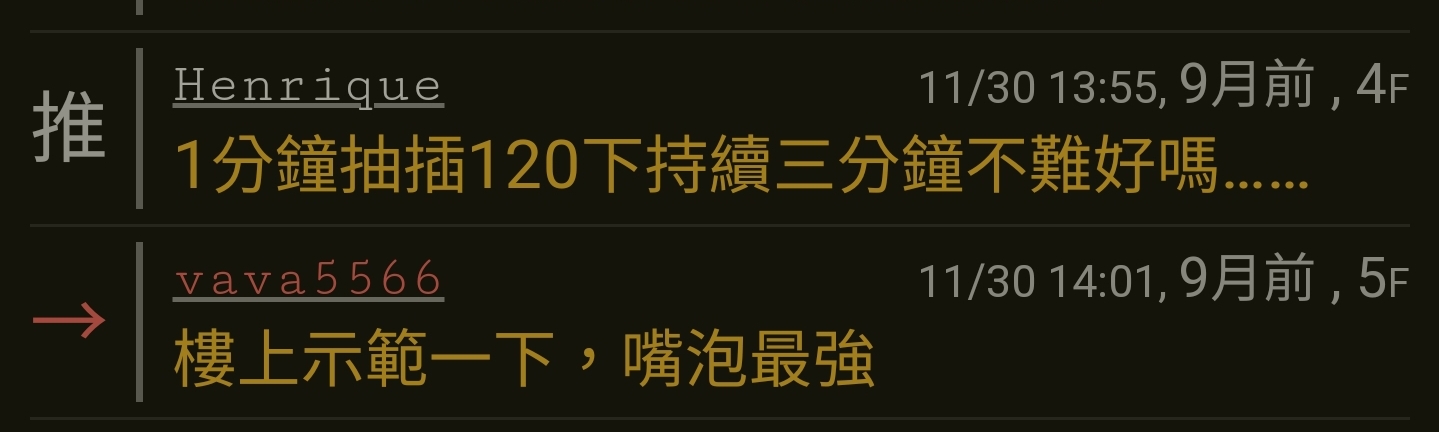polypress: @limeazure,是說被男同吹到口爆不用一分鐘就禁臠嗎 09/10 22:36