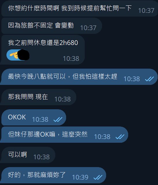 → idmaker: 是line群組建立後 跟uber一樣有單就撒群組內 跟小姐報時 09/16 02:30