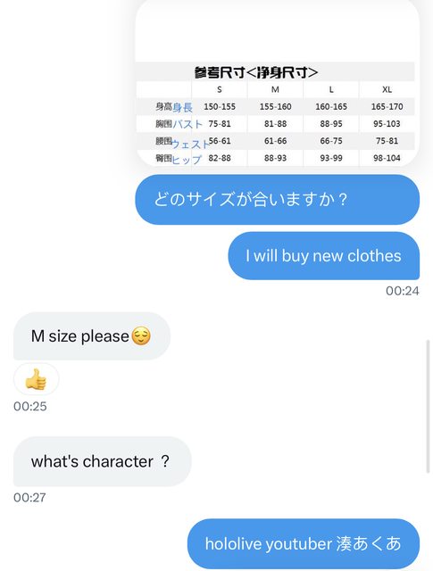 然後我跟他說我會買新的,順便給他尺寸表讓他選一下