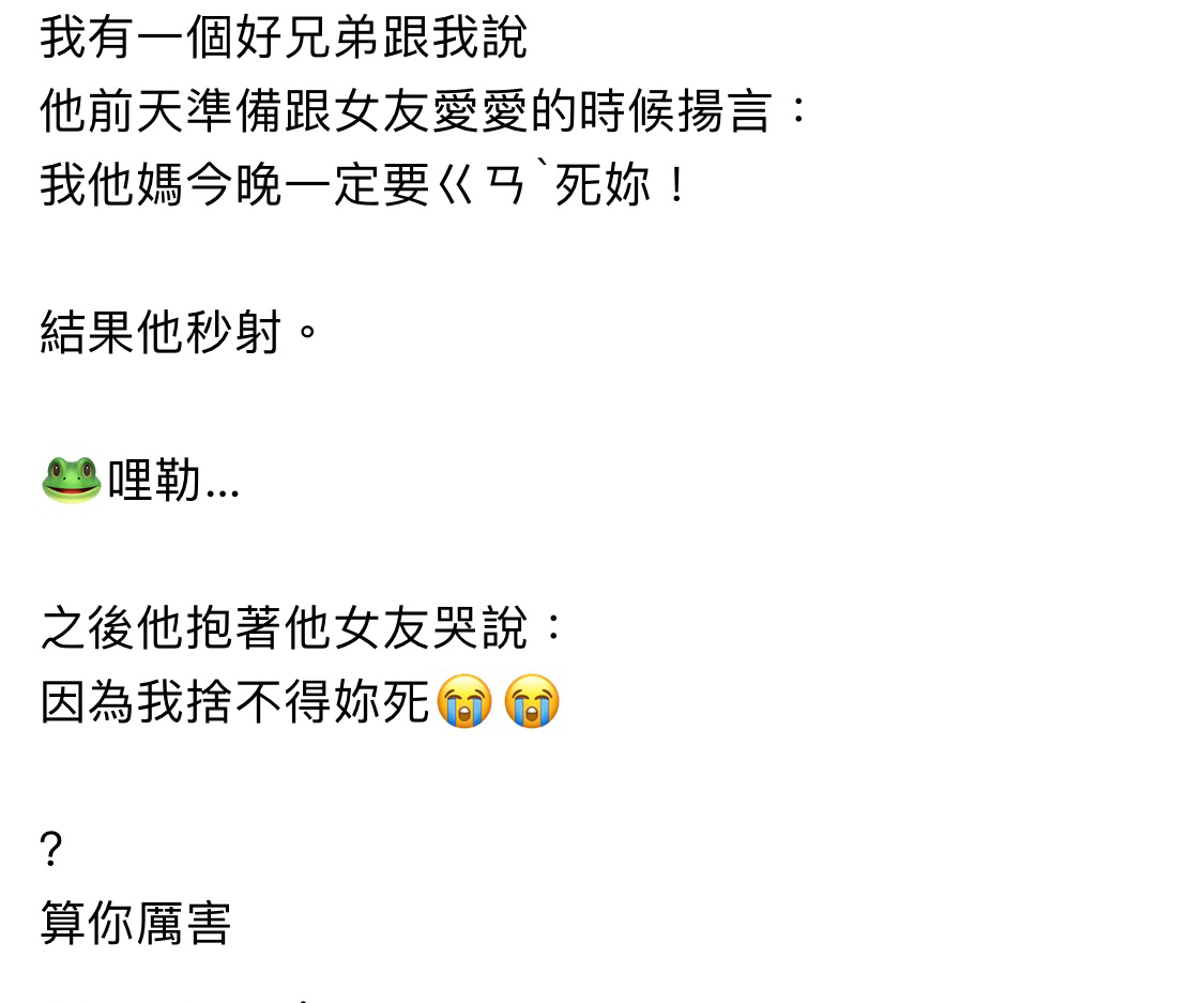 推 KingSccasher: 你這個笑話講的很爛 重點的我要幹死你沒講 11/17 18:58