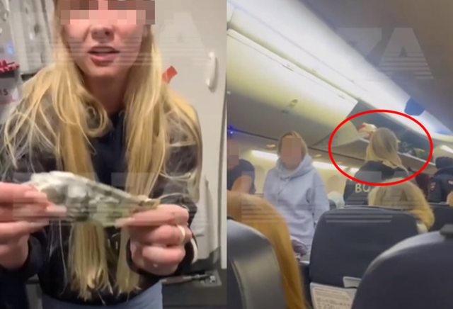 ▲女子大鬧機艙,還試圖以美元100元賄賂空服員。(圖/翻攝自俄羅斯媒體)