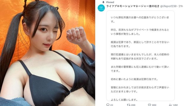 隔日,所屬公司「LIFE PROMOTION」即透露戀渕桃奈遭到性騷。