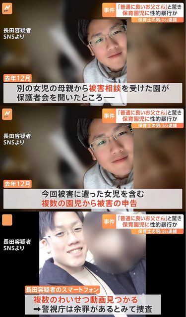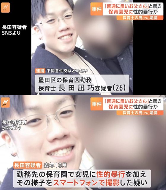的27歲男子長田巧凪,據傳他本身是園長的兒子,至少有4名立案調查的年幼女童被他帶