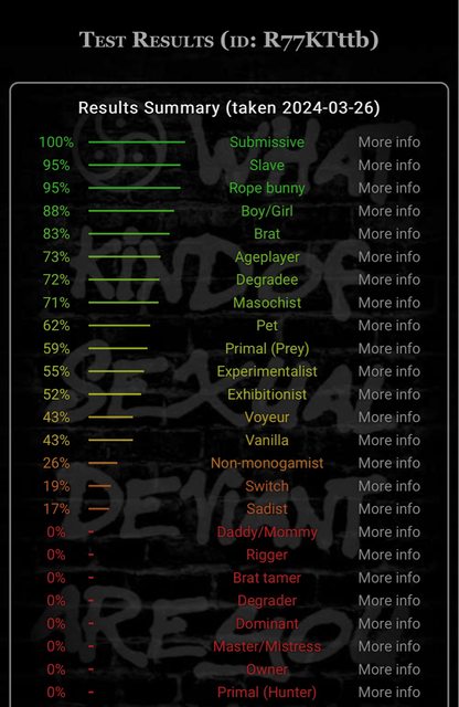 嗨嗨,其實對於被調教已經嚮往很久,但一直遲遲沒試過。剛剛做了測驗發現不管隔了多