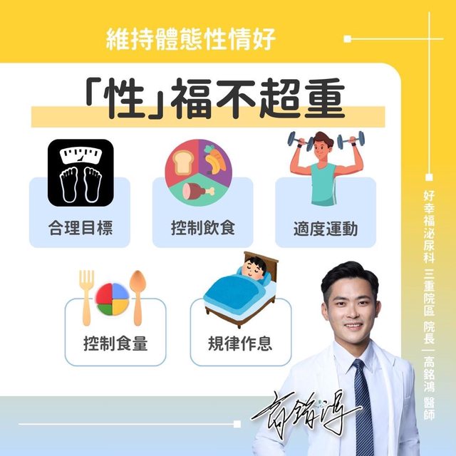 肥胖是睪固酮殺手,連帶影響在「床上的表現」,三重好幸福泌尿科診所院長高銘鴻表示