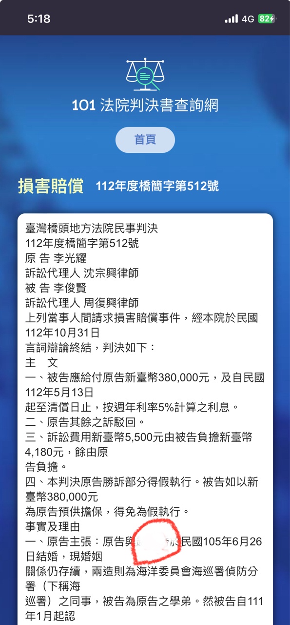推 wul4123: 原告被告名字都找到了 還是搜不到耶 07/02 11:05