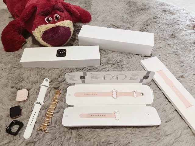 商品說明:盒裝完整、全新大號粉紅錶帶、全新副廠白色錶帶、CASETiFY玫瑰金錶帶、副