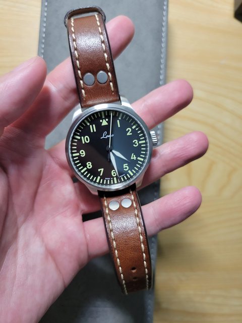 保留經典的飛行錶設計 鉚釘小牛皮錶帶配戴也很舒服 時標夜光亮度也非常夠 日常配戴也非常好搭配