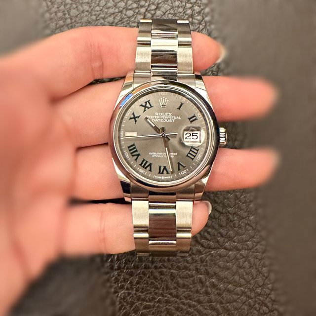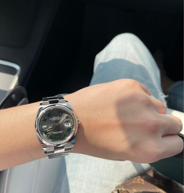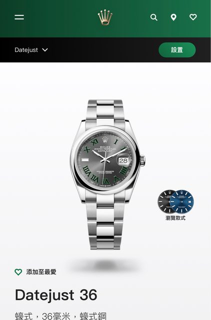 手錶型號:126200 灰面綠羅 36mm 三板帶 平光圈