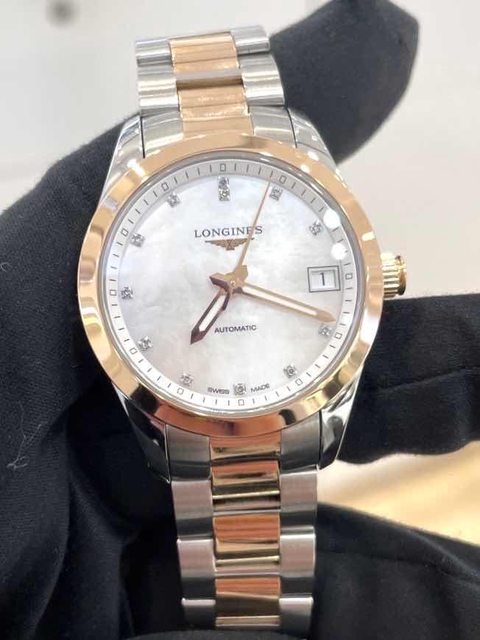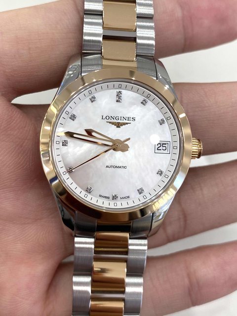 商品:浪琴18k半金珍珠面真鑽機械錶