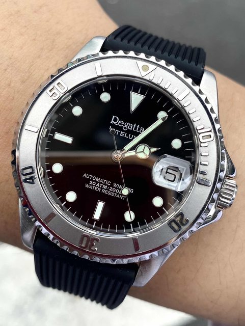 拉)與夜光大劍針,搭配18k玫瑰金外圈與半金鋼帶