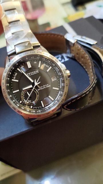 什麼?送Seiko全新原廠鈦帶?!(如圖) 來支商務人士不可以錯過的衛星對時錶!鈦帶輕盈、皮帶高雅、衛星對時準確,可適用所 有場合! 【目的】出售 【商品】 Citizen 光動能GPS衛星對時金屬錶 型號:CC3000-03E 【狀況】盒裝、無保卡(反正過保)、說明書、全新seiko原廠鈦帶 【購買日期】2019/5 【售價】16,800元 【錶徑】44mm 【聯絡方式】站內信或留言 【狀況】CC系列衛星對時錶,藍寶石鏡面無傷,使用GPS對時,很少使用,大部分放錶盒 ,整體無傷,看皮錶帶狀況就知道很少戴,整體設計適合大多數人,使用F150機芯(非10 0),目前在官網(gen's系列)F150機芯款式大概一隻都要5萬元起跳,還加一條全新Sei ko原廠鈦錶帶(約3000元),原廠皮帶也沒什麼使用,這樣只賣16,800元!兩種風格,一 次擁有,絕對市場最低價格,可參考之前買賣文,功能如下: 充滿電後可連續運作7年(省電模式) 10氣壓防水/衛星對時系統 GPS定位對時/撞擊偵測 指針修正/40個世界城市/夏令時間 萬年曆/JIS1型防磁/星期顯示 感光亮度等級指示/電力顯示 藍寶石玻璃鏡面/雙面防眩光處理 GPS衛星對時錶 【交易】假日雲林可面交,其餘匯款後店到店 https://i.imgur.com/rGzNCsZ.jpg