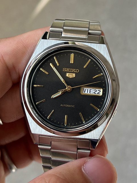 2.經典Seiko 5 早期版本,7s26自動上鍊機芯,黑金面盤,品項極新,面盤、鏡面、外殼