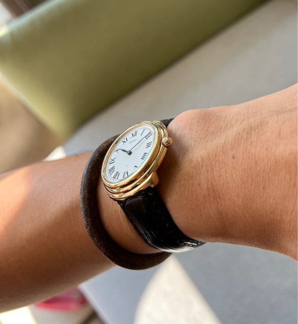 6139計時錶售價相當,面盤羅馬數字以及外殼階梯式鍍金錶殼有點像Cartier設計,走時