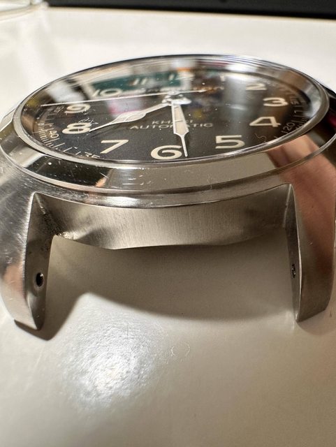 正常使用痕跡(有自己用拋光布整理),左下表耳有比較明顯的撞傷,右上表耳有淺刮痕。