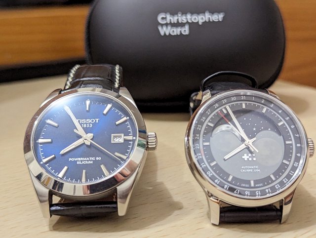 附上與天梭比較,兩者錶徑差不多,但因為Moonglow邊框比較小,整體錶面看起來反而更