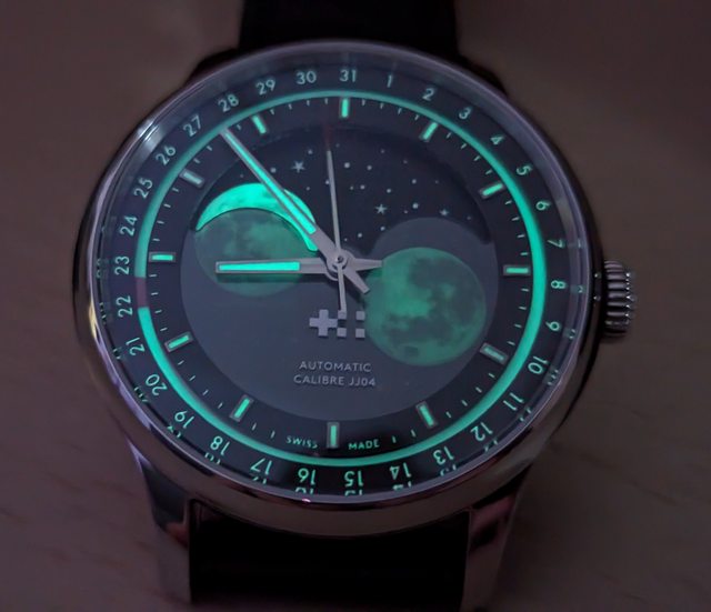 因為平日上班需要看日期,雖然沒有一般的日期窗,但換成面盤式的不破壞月相畫面我覺