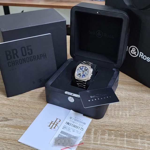 【售】: BELL&ROSS 柏萊士 BR 05系列 放射藍面錶盤 計時碼錶功能 日期窗 自動上鍊機