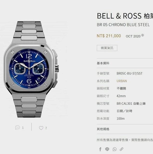 【特色】:原廠新錶訂價約21.1萬,實際購入價約17萬 發票在,BR原廠301自動上鍊機芯