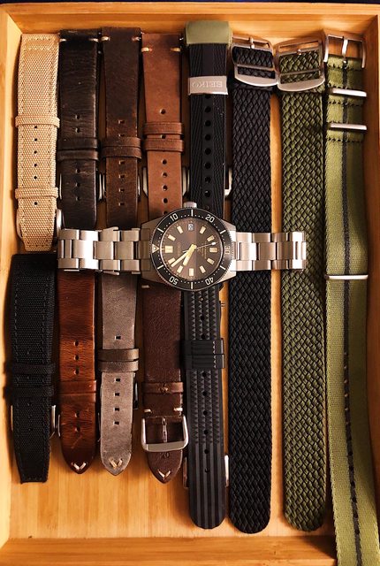 隨附物件:盒單全、太空人三板鋼帶(已換上)、原廠膠帶、Waffle膠帶、代用皮錶帶*8、貝倫帶*2、Nato*1