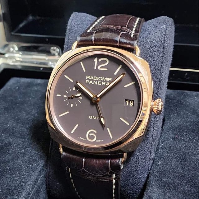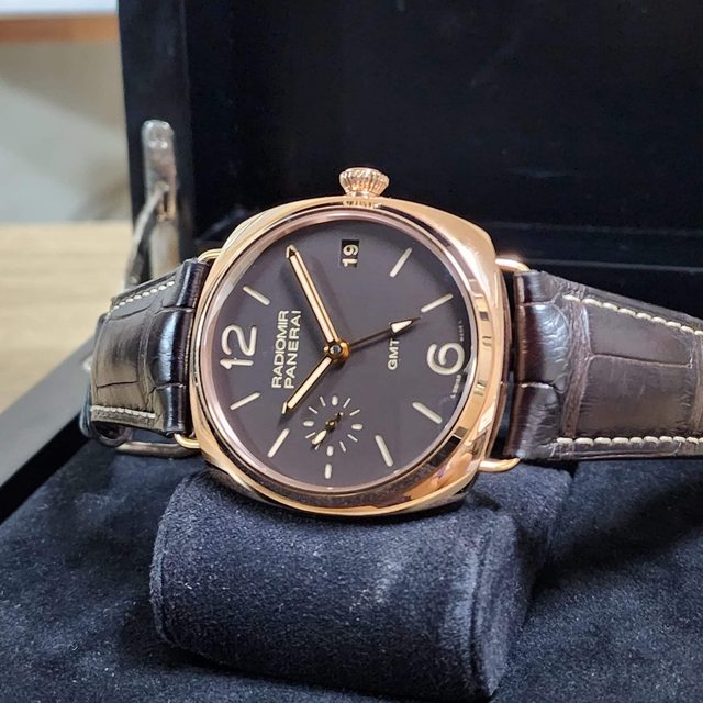 《售》:PANERAI 沛納海 PAM421 18k玫瑰金材質 GMT雙時區 動力顯示於錶背 小秒針 三