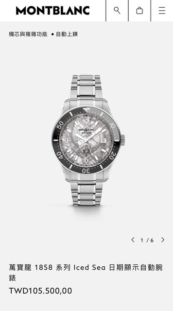 萬寶龍 1858 系列 Iced Sea 日期顯示自動腕錶採用灰色冰川圖案錶盤,給人一種深入冰川