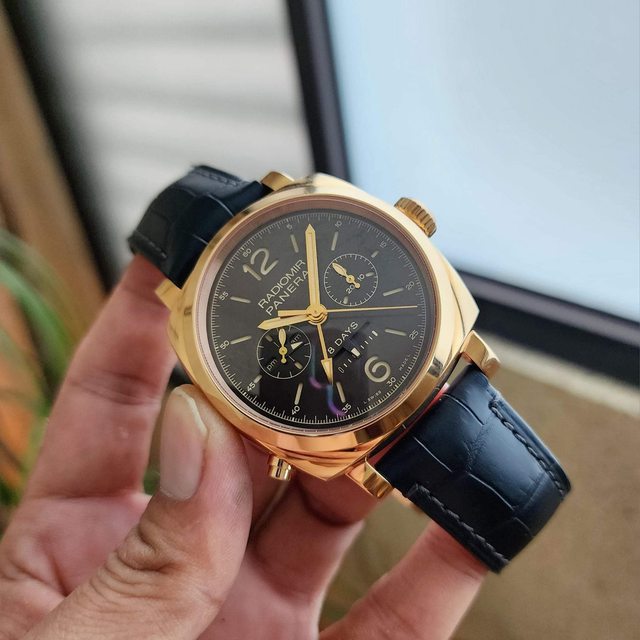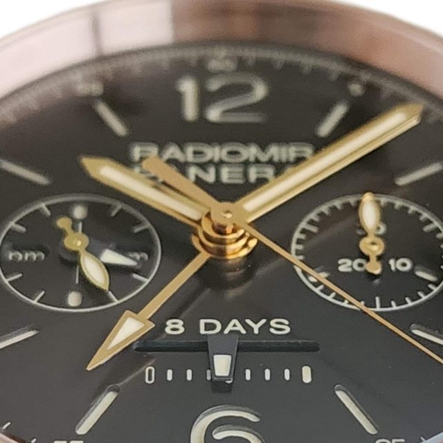 【售】: PANERAI 沛納海 PAM502 18k玫瑰金材質 巧克力色三明治面盤 單按把計時碼錶
