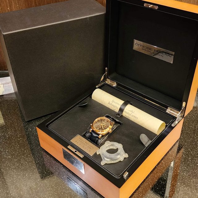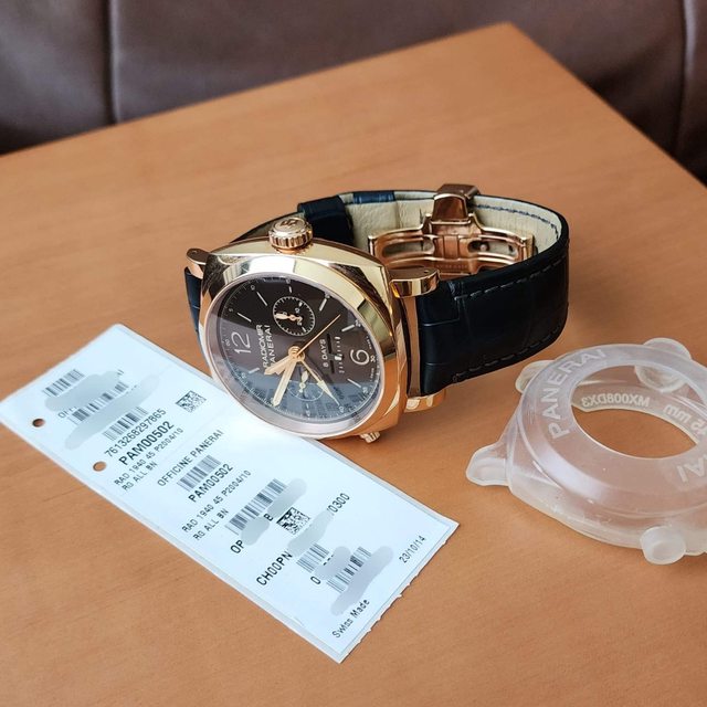 【配件】:沛納海限量大盒,限量證書,條碼貼紙,說明書,原廠鱷魚皮錶帶 在。