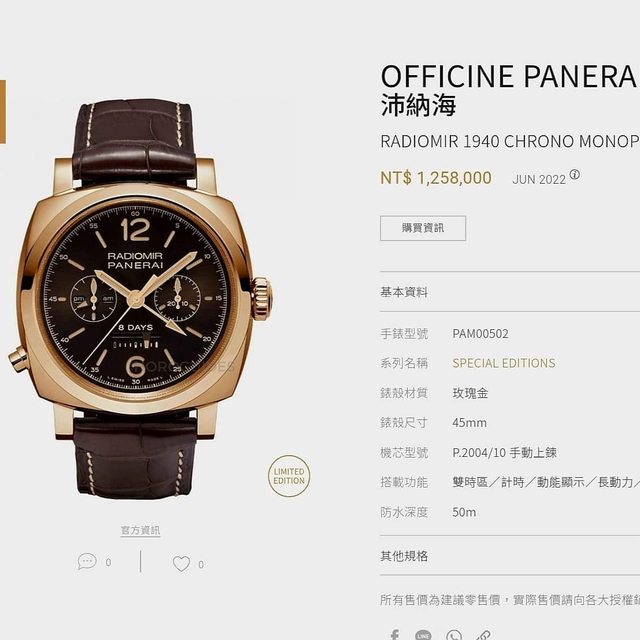 標題[賣錶] PANERAI 沛納海 PAM502 18K金 單把計時